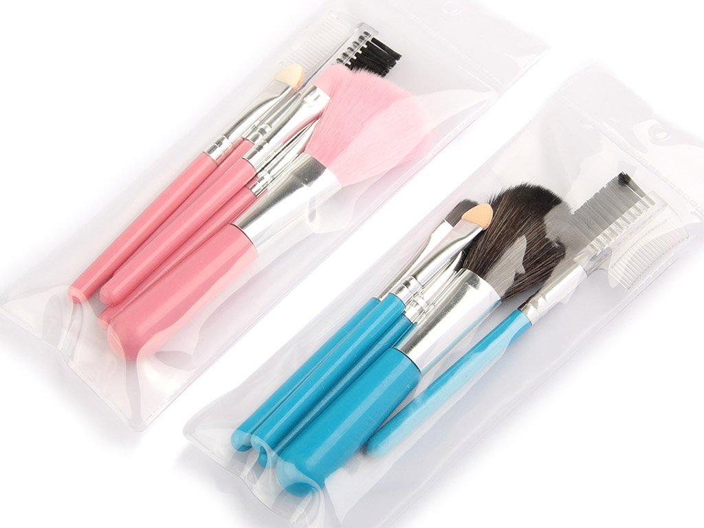Praktisches 5-teiliges tragbares Set von Make-up-Pinseln. Die Schminkpinsel in diesem kompakten Paket sind besonders auf Reisen oder in Ihrer Handtasche willkommen, da sie nicht viel Platz einnehmen.