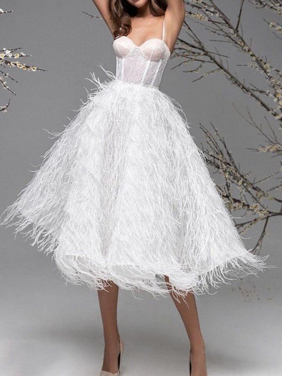 Moderne mittellange Abendkleider mit Straußenfedern von Antonia