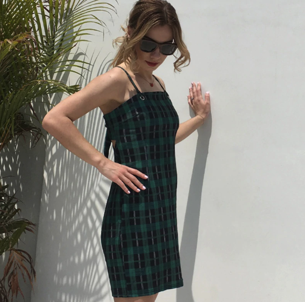 Moderne trendige gemusterte Damenkleider mit schmalen Trägern