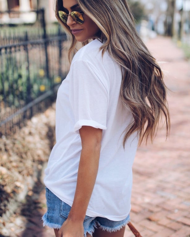 Baumwoll-T-Shirt, das auf der Brust mit geschlossenen Augen und schönen Lippen verziert ist.