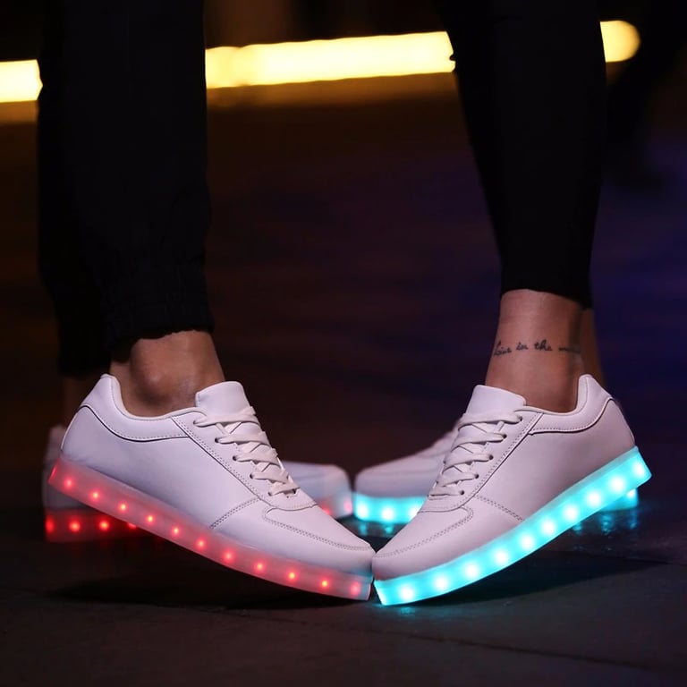Mit diesen leuchtenden Sneakern werden Sie nicht mehr übersehen! Der Akku wird über ein USB-Kabel aufgeladen.