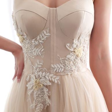 Wir empfehlen: Messen Sie immer genau. Messen Sie mit Unterwäsche, die ähnlich ist wie die, die Sie unter dem Kleid tragen werden, nur so können wir die richtige Größe garantieren.