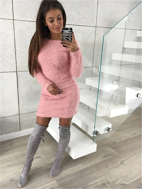 Plüschige interessante schöne Damenkleider mit langen Ärmeln