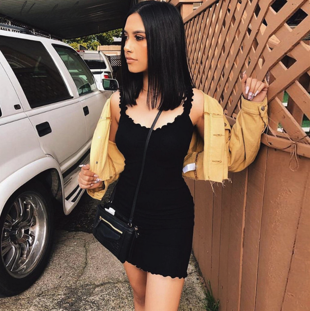 Volantkleid für Damen mit quadratischem Ausschnitt - schwarz