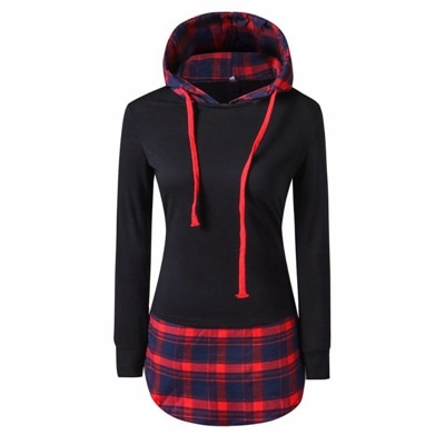 Langer Hoodie, den Sie auch als Hoodie-Kleid verwenden können, der Fantasie sind keine Grenzen gesetzt. Dieser Hoodie ist besonders, da er am Ende mit kariertem Material gefüttert ist, das sich auch an der Kapuze befindet.