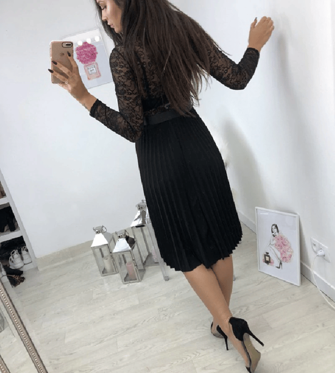 Schwarzes Abendkleid für Damen mit Spitze