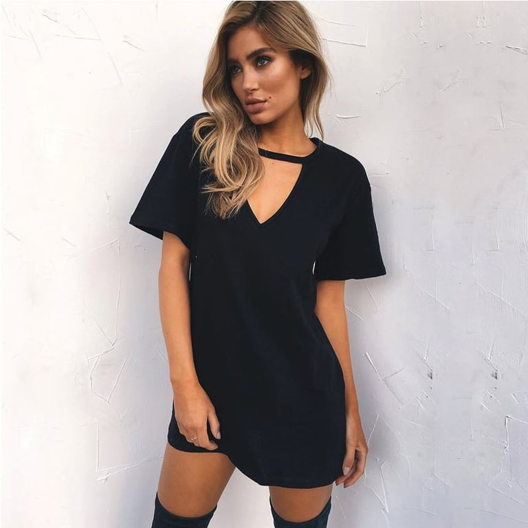 Schwarzes langes Damen-T-Shirt mit Ausschnitt