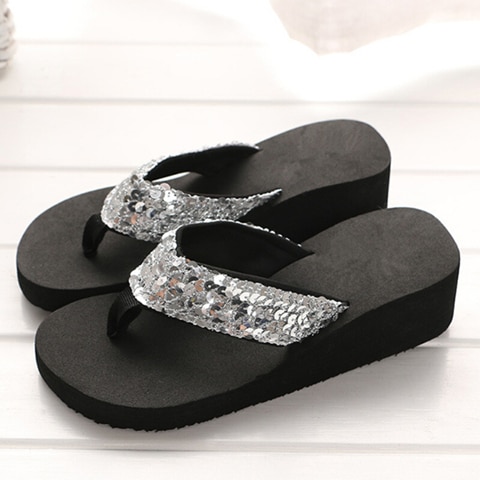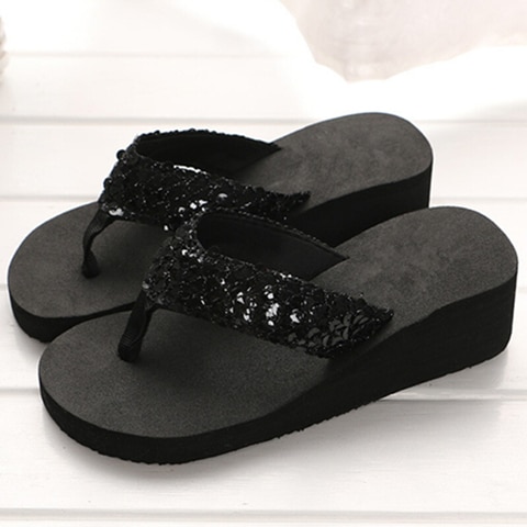 Damen Flip-Flops mit Glitzer und hohem Absatz