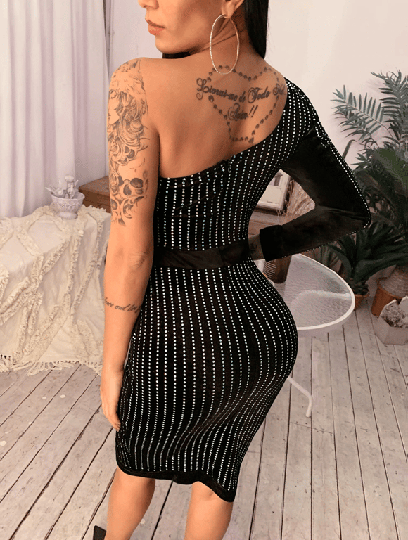 Stilvolles schwarzes Abendkleid mit Strasssteinen