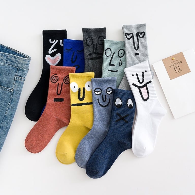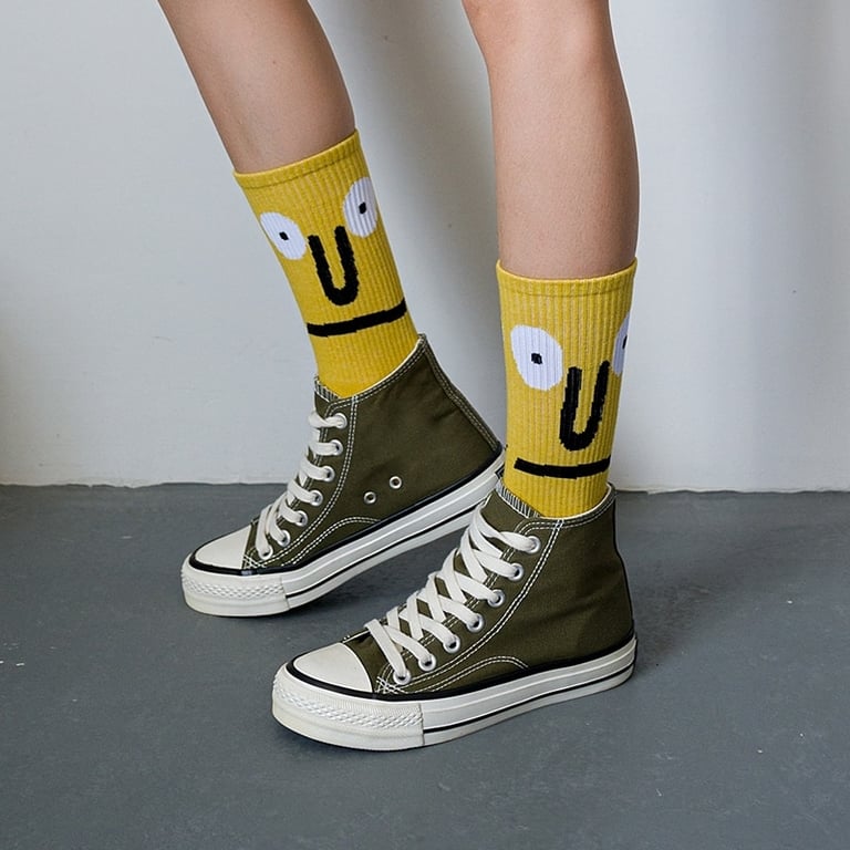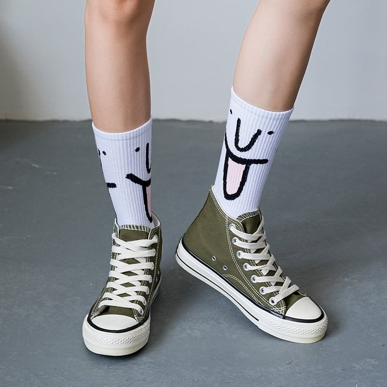 Unisex hohe gerippte Socken mit Funny Gesicht Druck