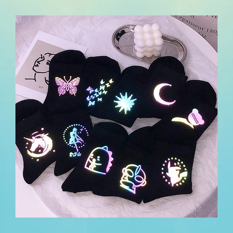 Unisex hohe Socken mit phosphoreszierendem Harajuku-Druck