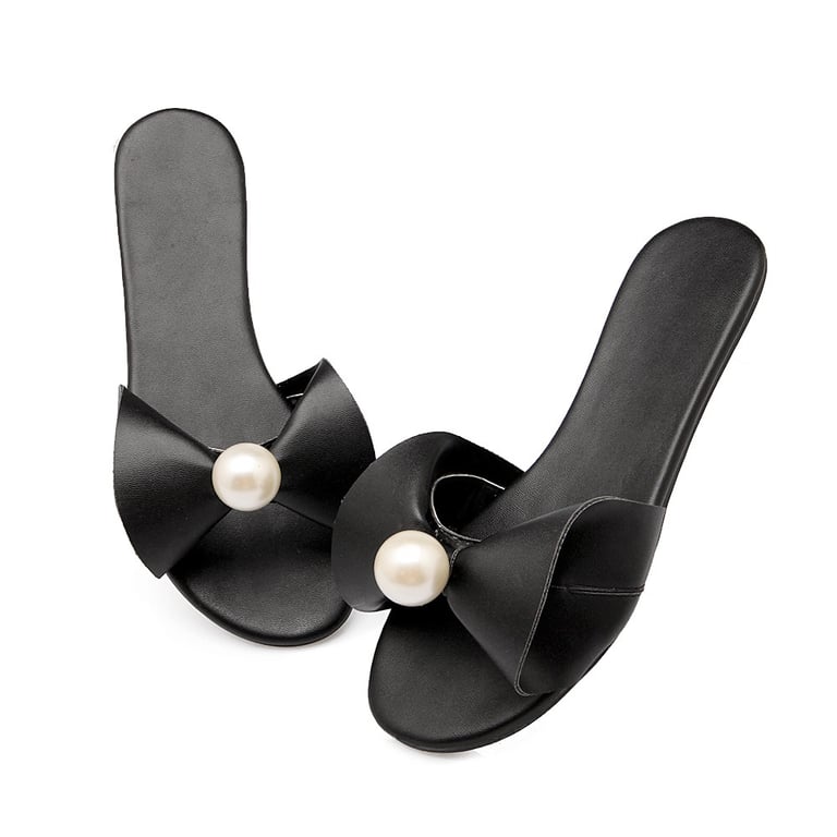 Verstärkte einfarbige Damenpantoffeln mit Perle