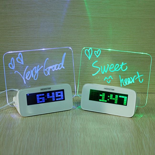 Stylische Uhr mit leuchtender Fläche für Notizen, erfreuen Sie Ihre Liebsten gleich am Morgen mit einer schönen Nachricht. Der Wecker enthält auch einen USB-Hub mit vier Anschlüssen.