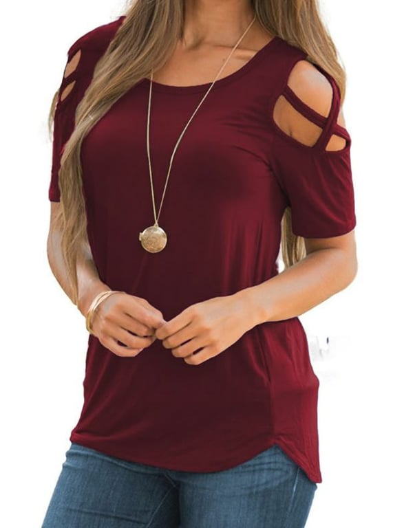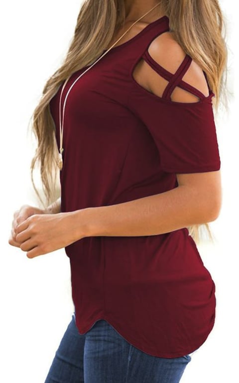 Weinrotes Damen-T-Shirt mit interessanten Ärmeln