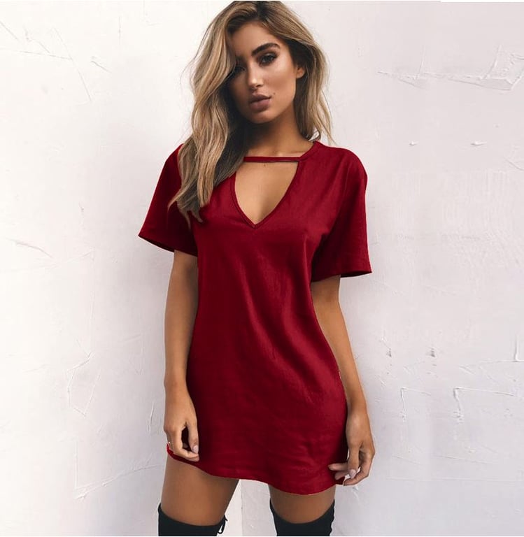 Weinrotes langes Damen-T-Shirt mit Ausschnitt