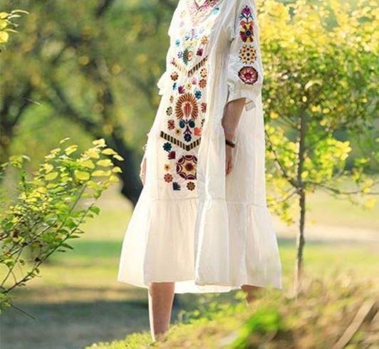 Weiße originale Damenkleider mit Applikationen