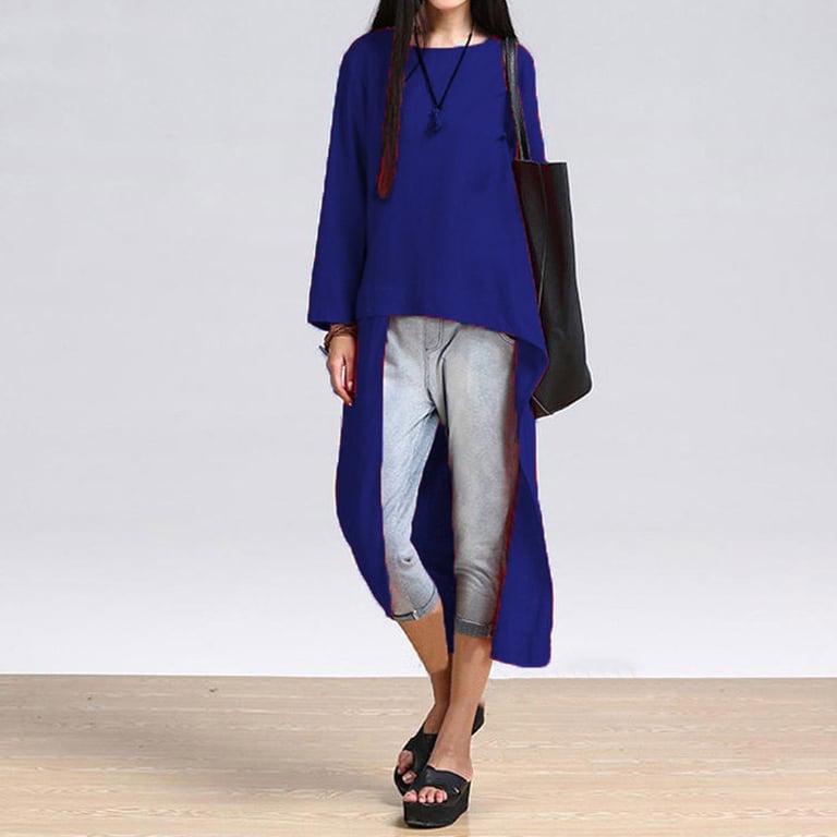Damen T-Shirt mit asymmetrischem Schnitt, hinten länger, vorne kürzer.