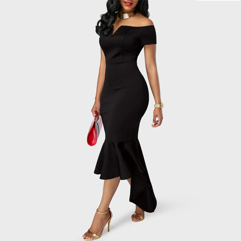 Elegantes Kleid mit asymmetrischem Rock und sexy Ausschnitt. Geeignet für gesellschaftliche Anlässe.