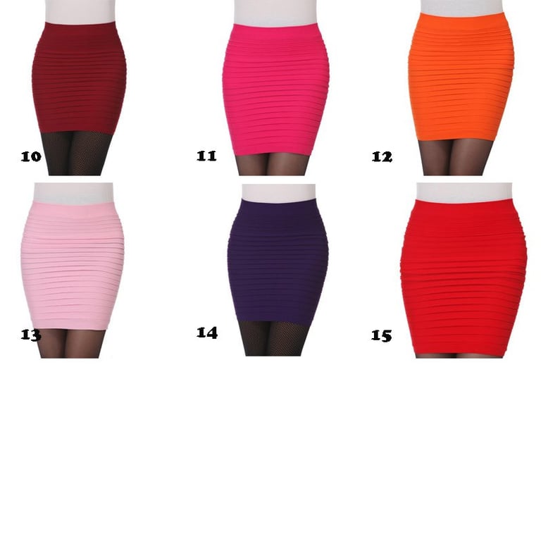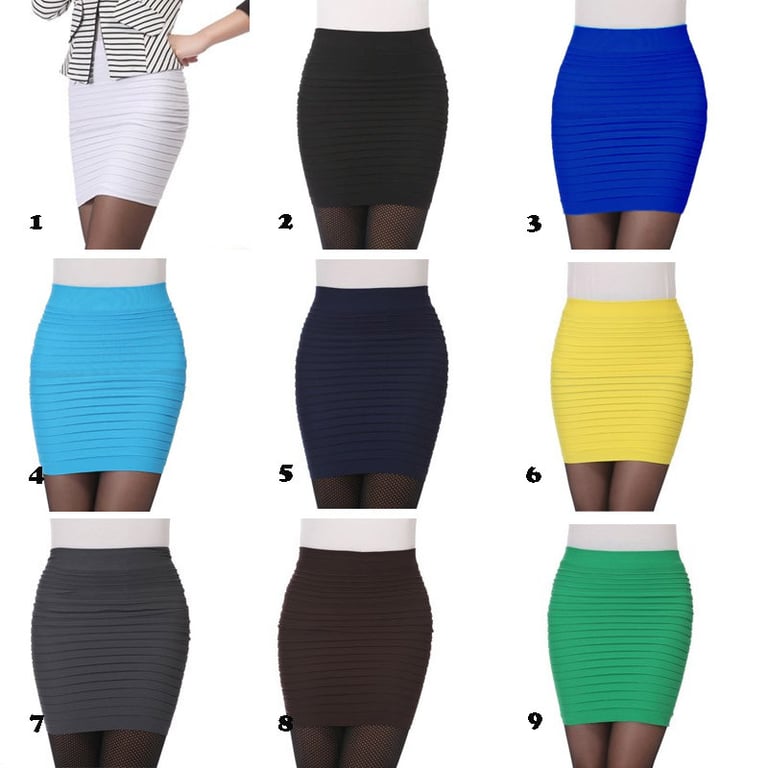 Damenrock mit hohem elastischen Bund. Figurbetonter Schnitt. Elastisches Material. Universelle Größe. In mehreren Farbvarianten erhältlich.