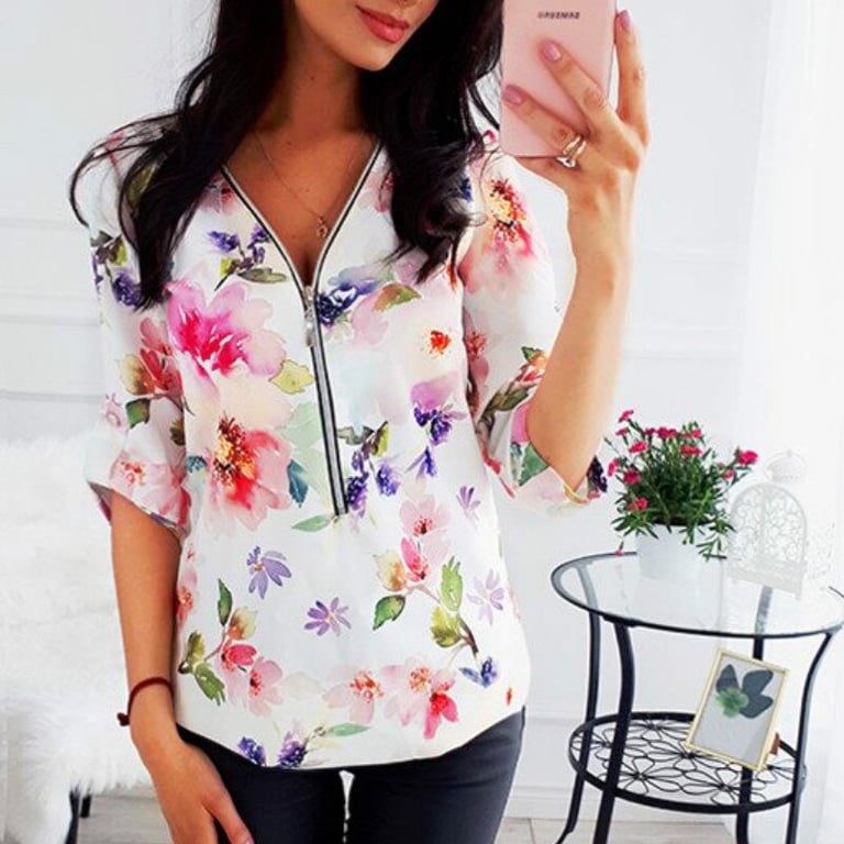 Eleganter Top im attraktiven Stil. Der Druck wird stilvoll bei gesellschaftlichen Anlässen sowie im Alltag sein.