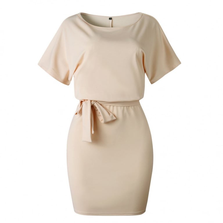 Damen Etuikleid mit kurzen, breiten Ärmeln und einem Bootsausschnitt. Gürtel zum Binden in der Taille. Elegante einfarbige Ausführung. Erhältlich in mehreren Farben.