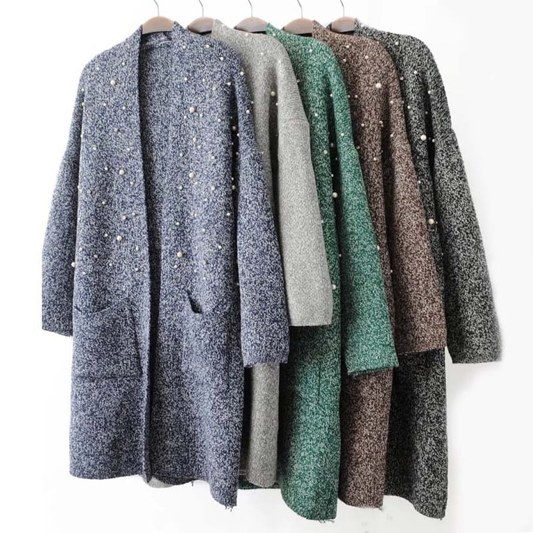 Langer Damenpullover mit Verzierungen, erhältlich in insgesamt 4 Farben.