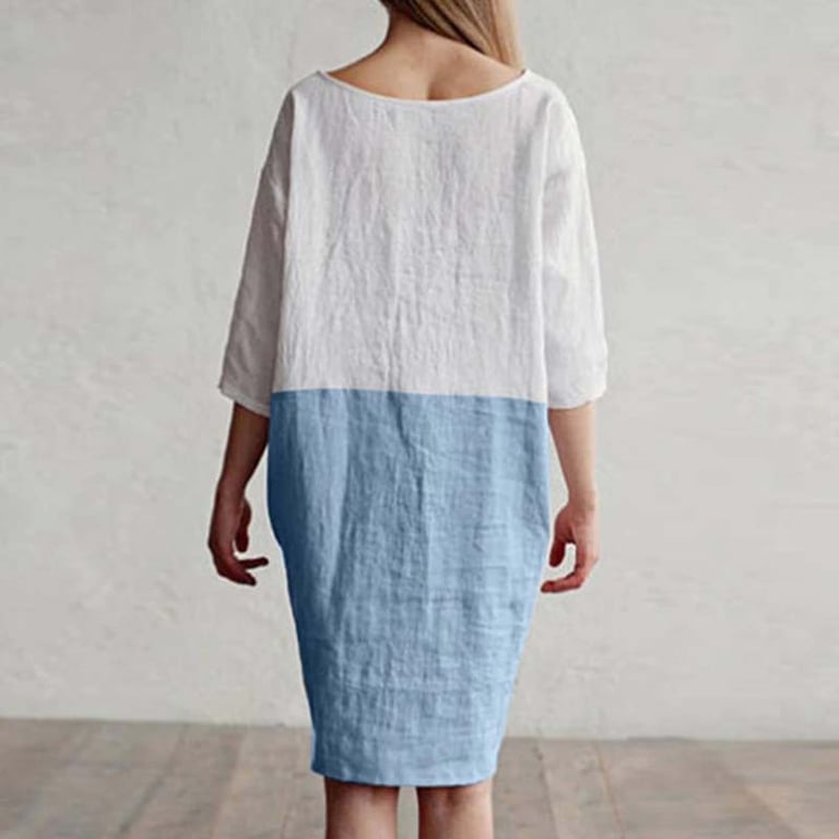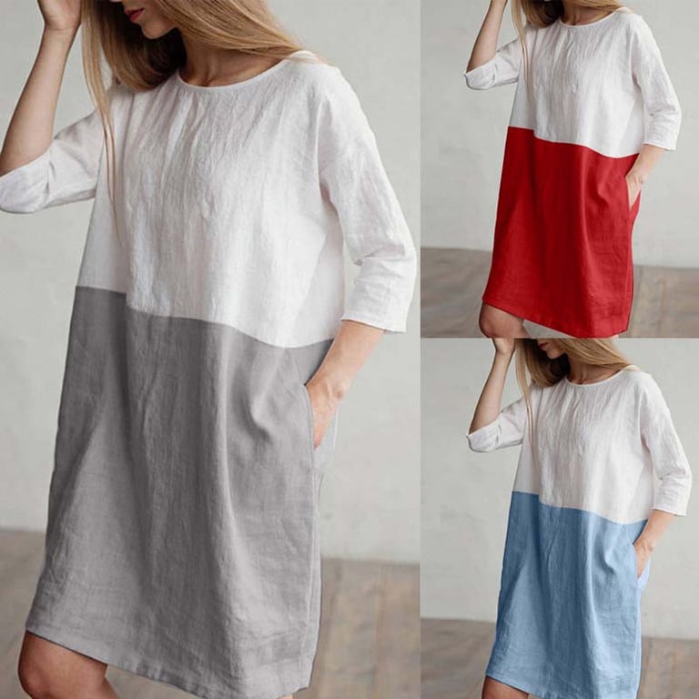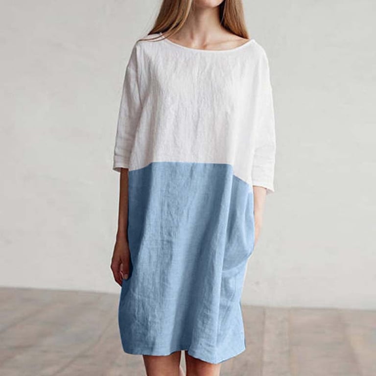 Damenkleid im lockeren Schnitt, in einfachen Farben, die jedoch auffallen. Ein solches Stück im Kleiderschrank zu haben, ist ein Gewinn, probieren Sie es auch im Sommer aus!