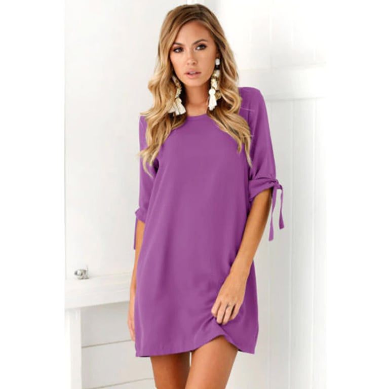 Damen Freizeitkleid mit Rundhalsausschnitt und Dreiviertelärmeln. Lockere gerade Passform. In mehreren Farbvarianten erhältlich.