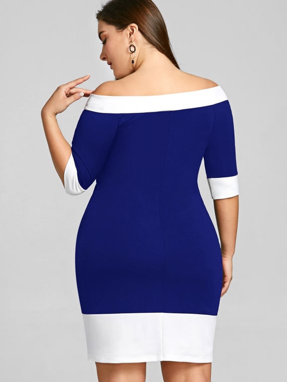 Formelle Plus-Size-Kleider in Blau-Weiß mit freiliegenden Schultern.