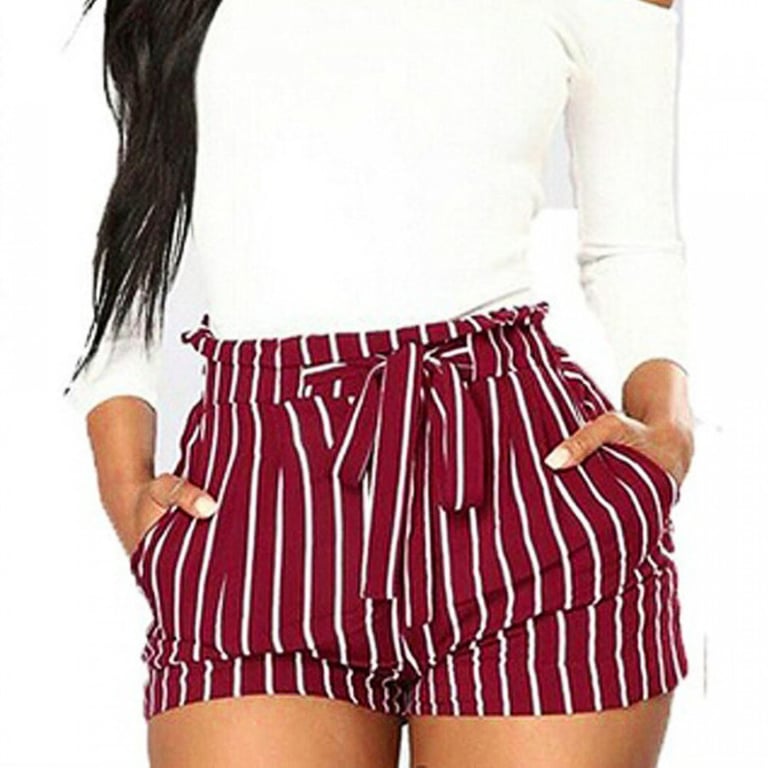 Damen Shorts mit hohem Bund und Bindegürtel. Lockere Passform. Bedruckt mit gestreiftem Muster. Mehrere Farbvarianten.