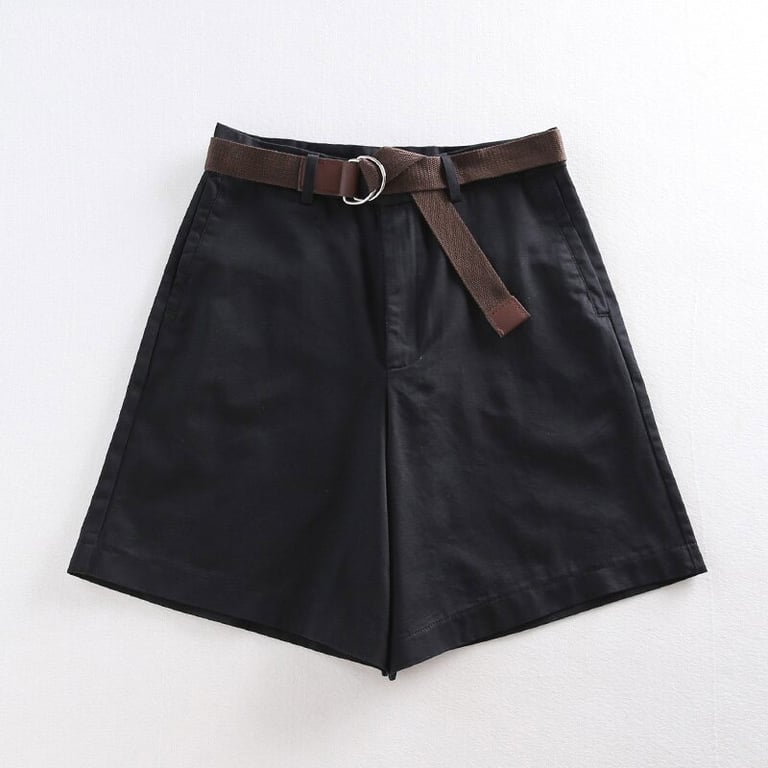 Damen Shorts mit hoher Taille und lockerem, längerem Schnitt. Seitentaschen. Mit einem Gürtel und einer Schnalle in der Taille. In mehreren Varianten erhältlich.