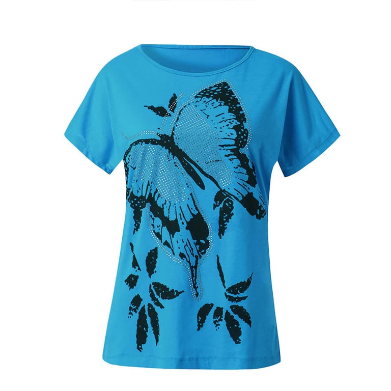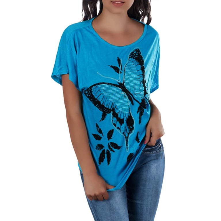Damenoberteil mit attraktivem Schmetterlingsmotiv zur Ergänzung Ihres Looks. Die großzügigen Größen sind für jede Figur geeignet.