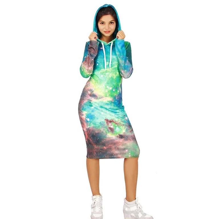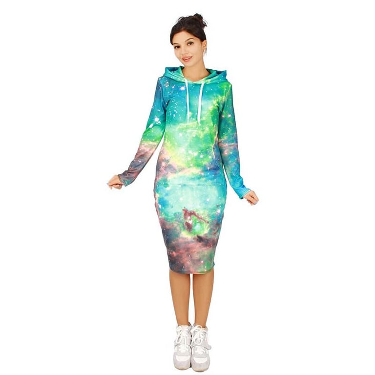Ein Kleid mit einem tollen Galaxy-Muster, mit dem Sie jeden in Ihrer Umgebung beeindrucken werden. Wählen Sie aus vielen Varianten!