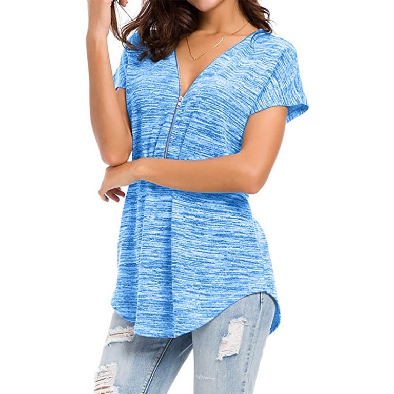 Damen T-Shirt mit meliertem Design in lockerer Passform. Das Shirt hat kurze Ärmel und einen V-Ausschnitt mit dekorativem Reißverschluss. Angenehmes, luftiges Material. Erhältlich in mehreren Farbvarianten.