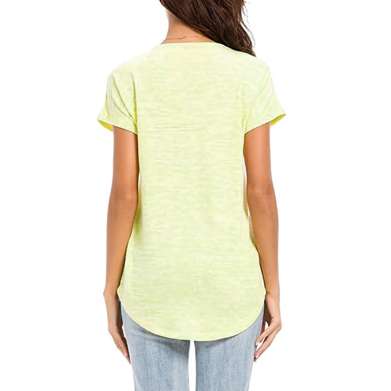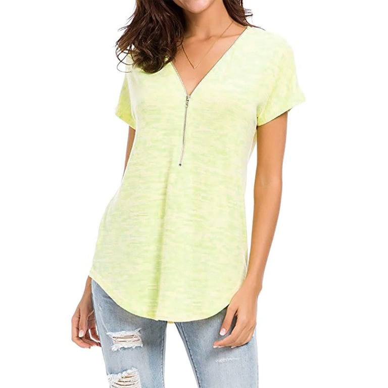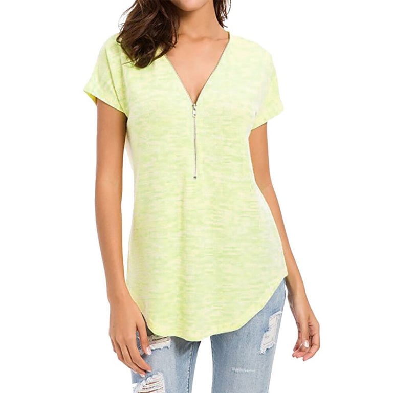 Damen T-Shirt mit meliertem Design in lockerer Passform. Das Shirt hat kurze Ärmel und einen V-Ausschnitt mit dekorativem Reißverschluss. Angenehmes, luftiges Material. Erhältlich in mehreren Farbvarianten.