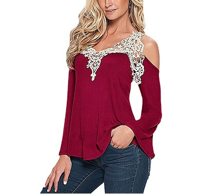 Damen T-Shirt mit Spitze und langen Ärmeln – rot