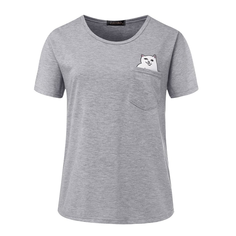 Damen T-Shirt mit kurzen Ärmeln und rundem Ausschnitt. Brusttasche mit Druck. Lockere Passform. Mehrere Farbvarianten.