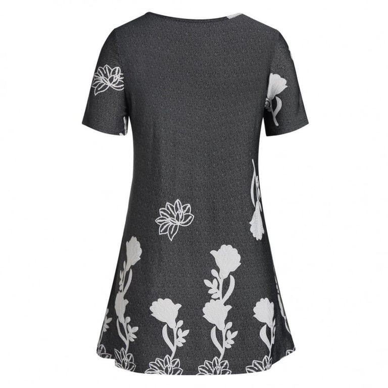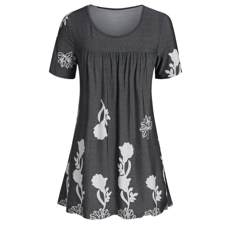 Damenoberteil mit kurzen Ärmeln und rundem Ausschnitt. Lockere Passform mit Raffung. Druck mit floralem Motiv. In mehreren Farbvarianten erhältlich.