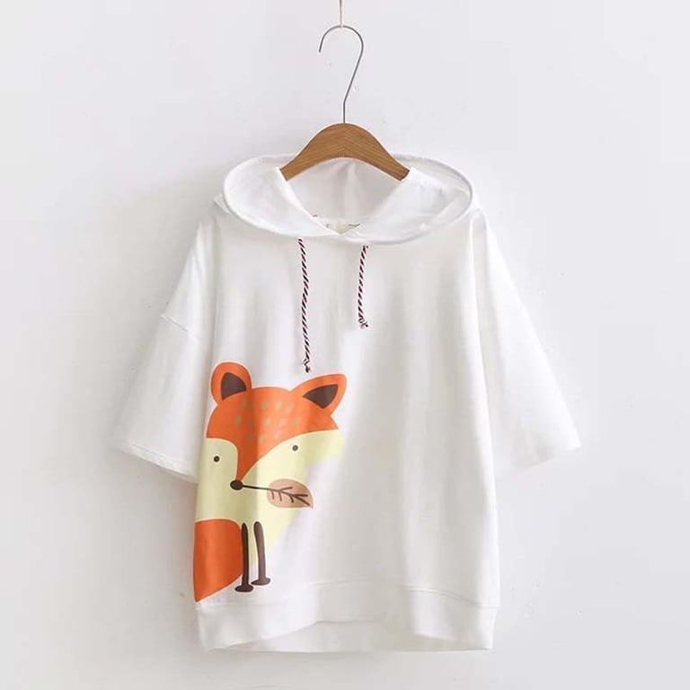 Bequemer Pullover mit langen Ärmeln und Kapuze. Für viele Anlässe, mit einem schönen Fuchs-Motiv.