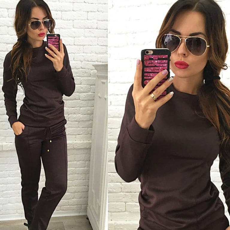 Damen Jogginganzug bestehend aus Hoodie und Hose. Der Hoodie hat einen runden Ausschnitt und die Jogginghose hat einen Gummibund. Einfacher, bequemer Schnitt. Das Set ist in zwei Farben erhältlich.