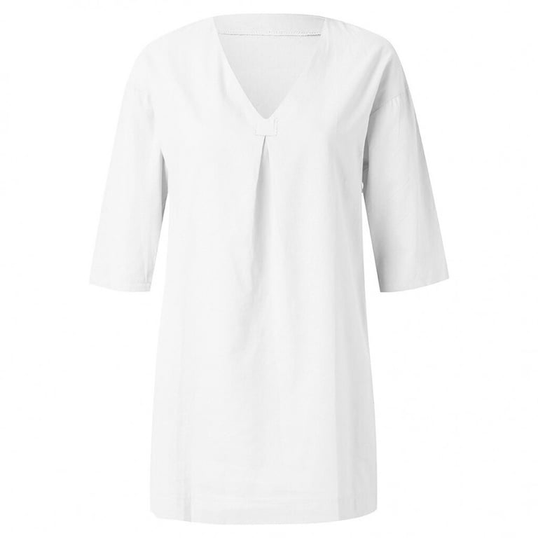 Damen lange Tunika-Bluse mit 3/4-Ärmeln. Lockere, bequeme Passform mit V-Ausschnitt. Erhältlich in mehreren Farbvarianten.