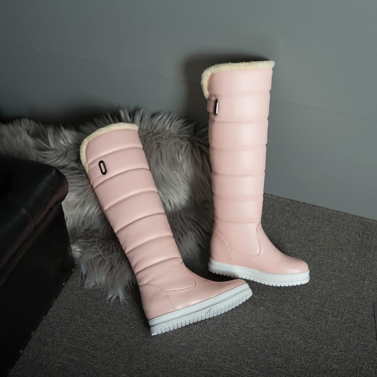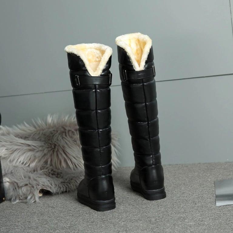 Diese langen Stiefel mit weichem und warmem Fell halten Sie schön warm.