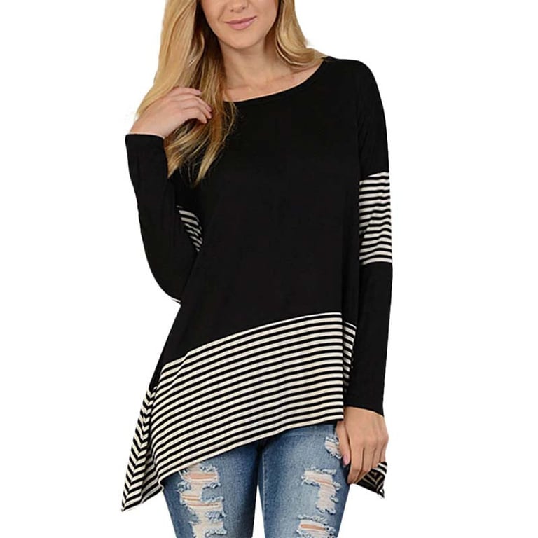 Angenehme Bluse mit langen Ärmeln. Klassische Farben in Kombination mit Streifen runden das Gesamtbild angenehm ab.