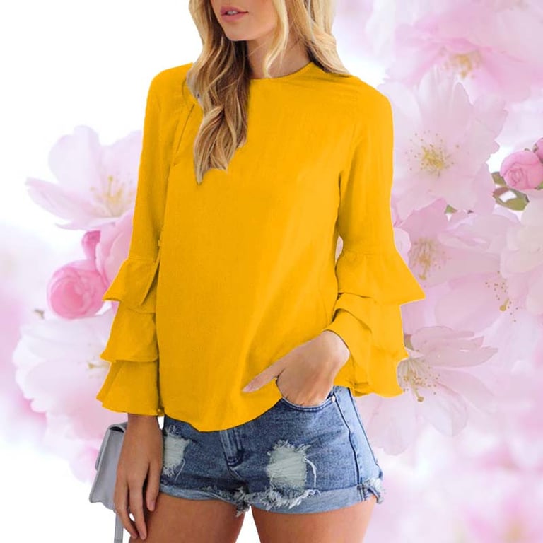 Modische Bluse, in der Sie zauberhaft aussehen werden. Die Rüschen an den Ärmeln sind derzeit wirklich modern und zudem angenehm zu tragen. Erweitern Sie Ihre Garderobe für die Frühjahrs- und Sommersaison, bei uns ist der Versand kostenlos!
