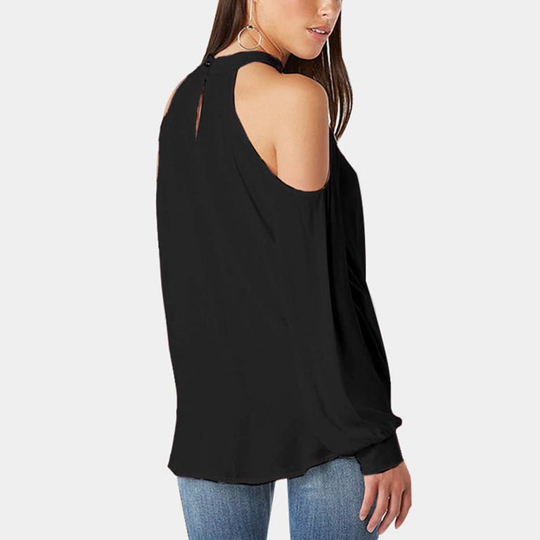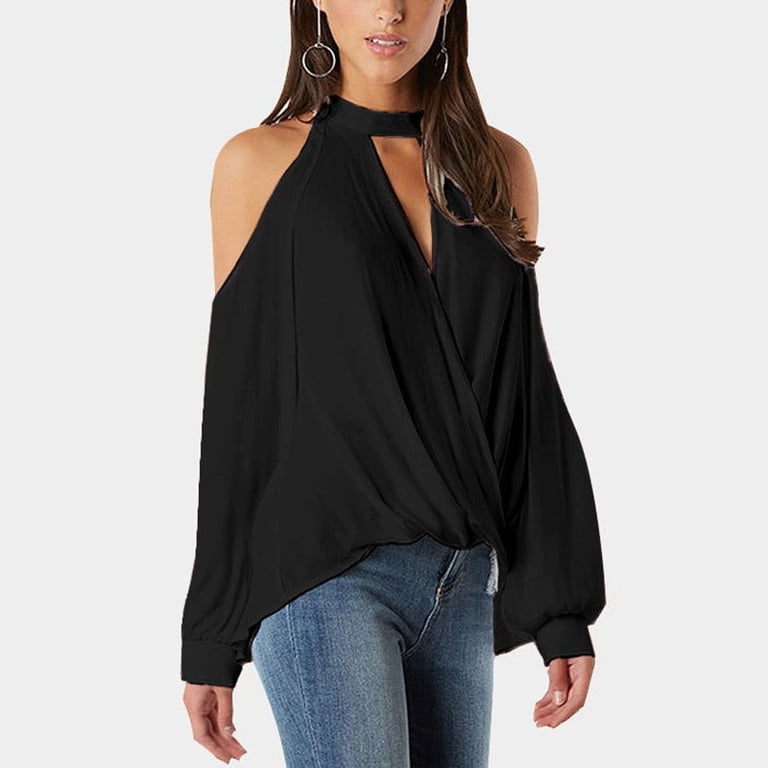 Damenbluse in elegantem Design mit überlappendem V-Ausschnitt. Langer, weit geschnittener Ärmel mit freiliegenden Schultern. Erhältlich in mehreren Farben.