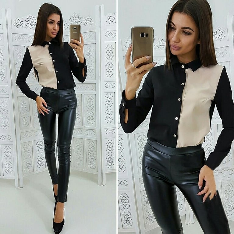 Damenbluse mit Kragen. Lange Ärmel und Knopfverschluss. Angenehmes Material. Zweifarbiges Muster. In mehreren Farben erhältlich.