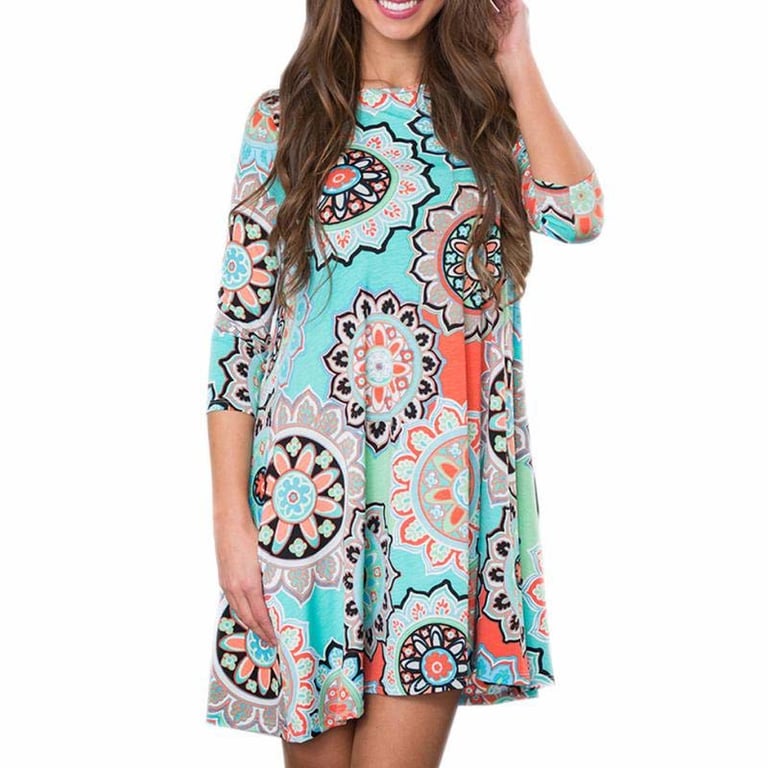 Wunderschönes Kleid mit einem angenehmen Muster, das trotz seiner Kürze sehr elegant ist. Sie können es für viele Anlässe während der gesamten Saison nutzen, zögern Sie also nicht und wählen Sie aus!