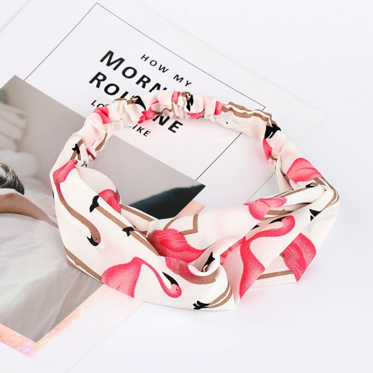 Damen-Haarband mit buntem Druck von Flamingos und dekorativem Knoten auf der Vorderseite. In mehreren Farben erhältlich.