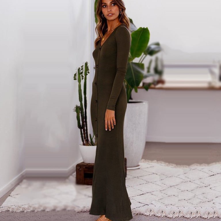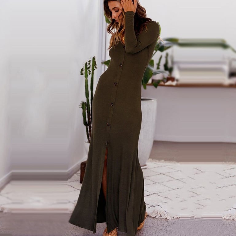 Damen lange Kleider mit Knopfverschluss.