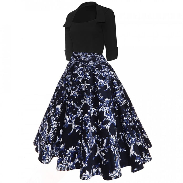 Damenkleid Andrey – blau-weiße Blumen